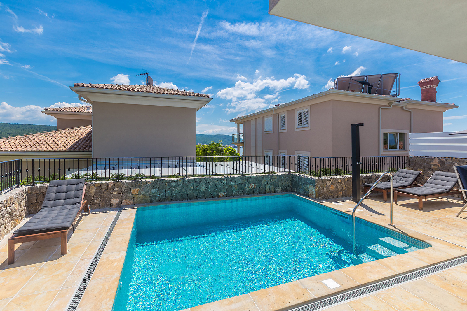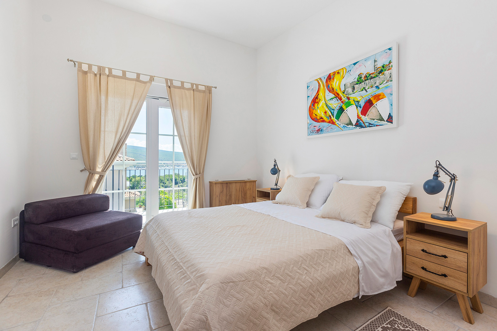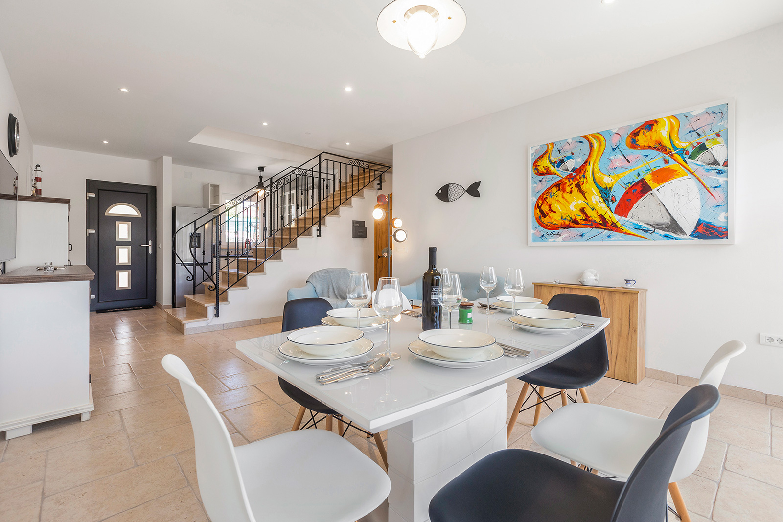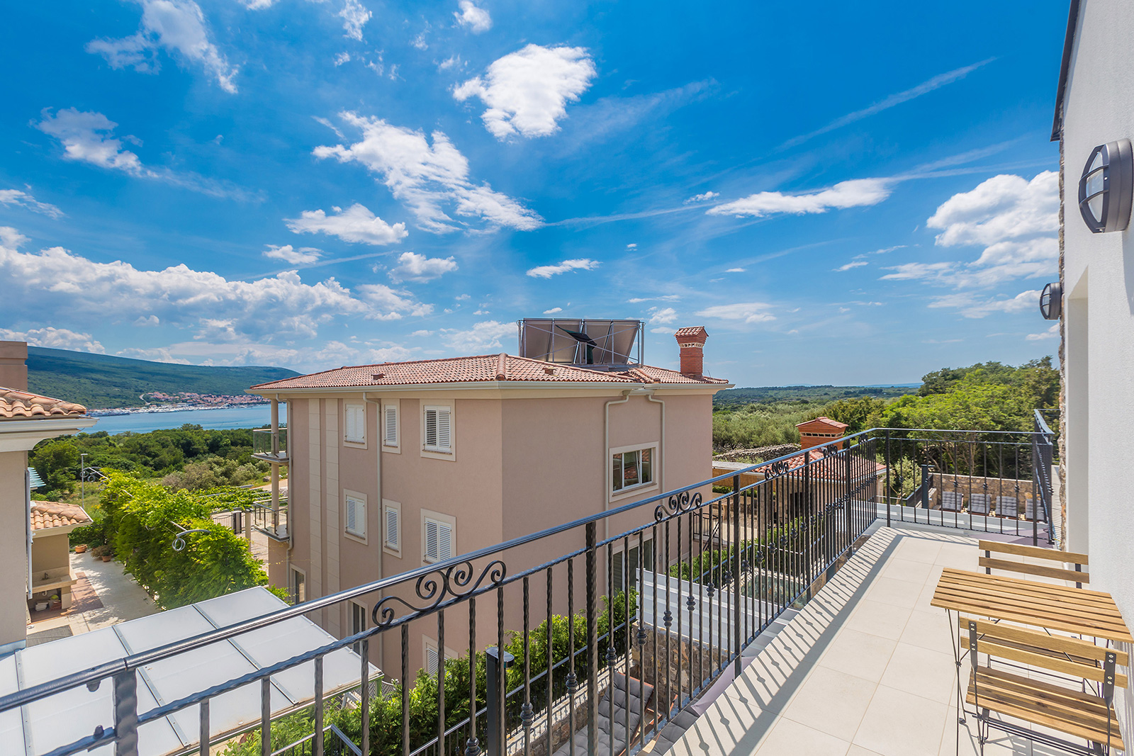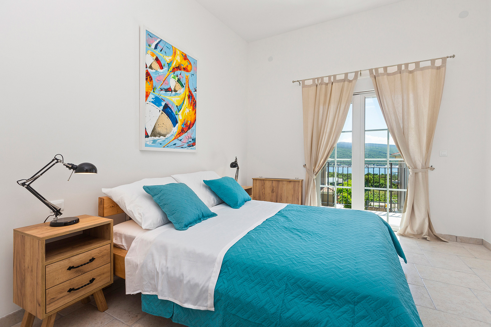 Ova prekrasna kuća za odmor s bazenom nalazi se na otoku Krku u malom mjestu Kornić. Udaljen je oko pet minuta vožnje od povijesnog grada Krka i grada Punta sa svojom dobro zaštićenom lukom. Zbog položaja na padini, iz kuće se pruža fantastičan pogled na more i maslinike po kojima je ovaj kraj poznat. Kuća, namještena s pažnjom na detalje, izgrađena je u tipičnoj otočkoj arhitekturi i sastoji se od uspješne mješavine modernih i tradicionalnih elemenata. Iz dnevnog boravka imate izravan pristup terasi s roštiljem, dnevnim boravkom i sunčalištem te grijanim bazenom. Glavna spavaća soba je u prizemlju, a druge dvije su na katu. Kuća je klimatizirana, ima podno grijanje, a na velikoj i ograđenoj parceli postoje i parkirna mjesta.