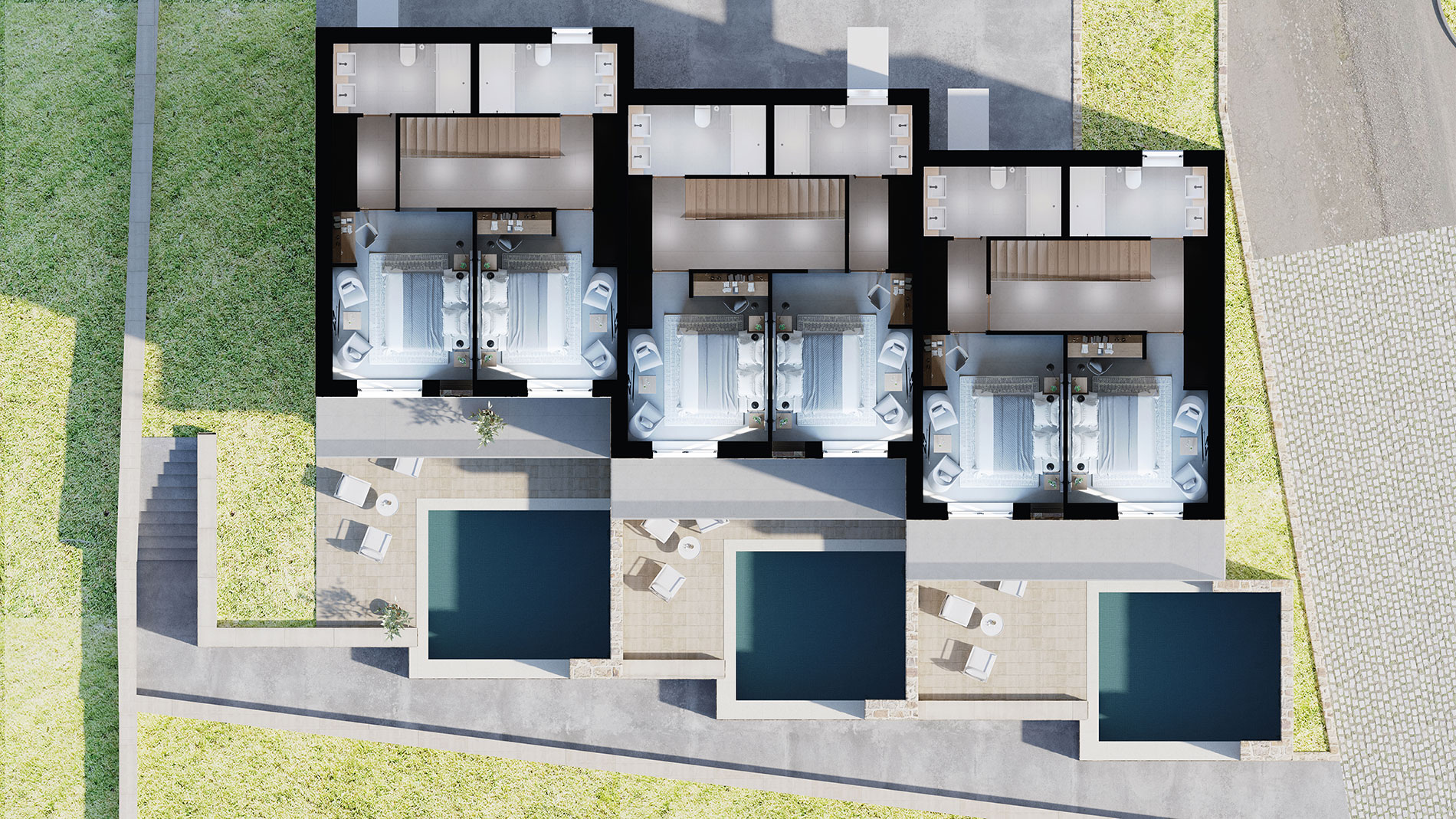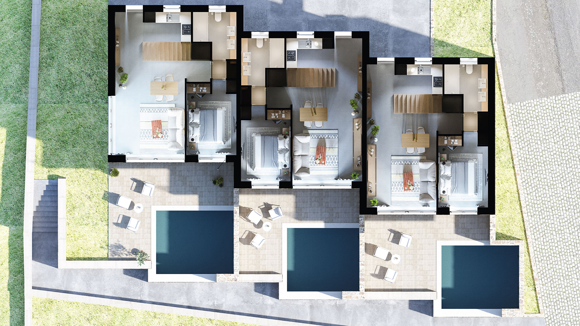 Villa je klimatizirana sa podnim grijanjem. Sastoji se od prizemlja u kojem je smještena spavaća soba, kupaonica, dnevni boravak sa kuhinjom.