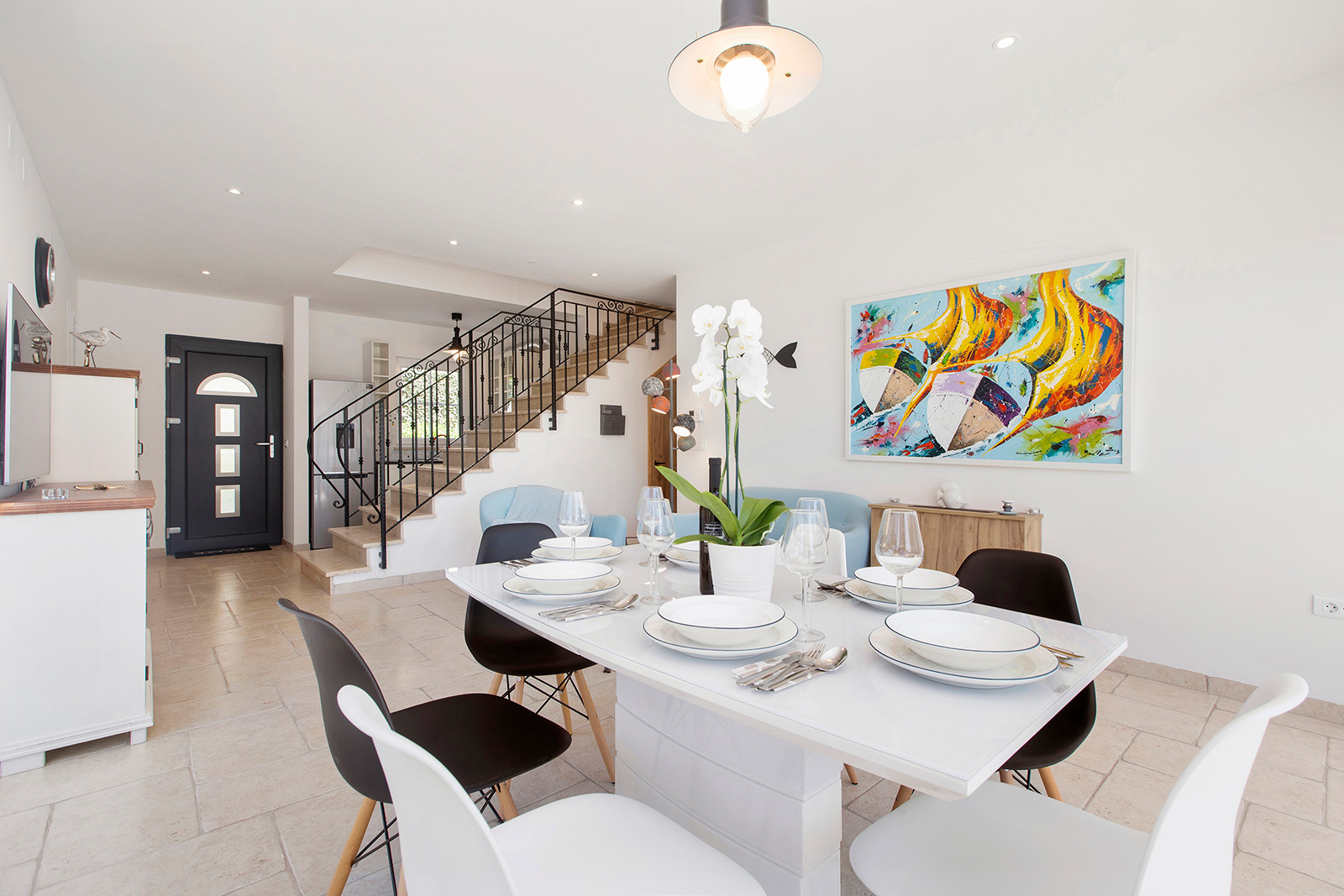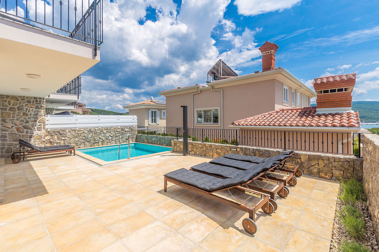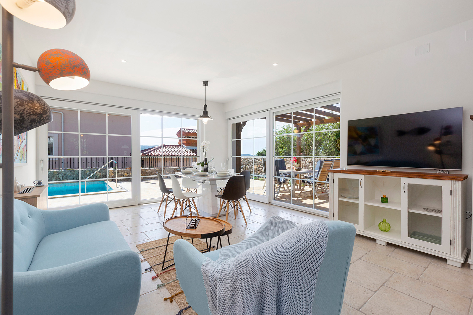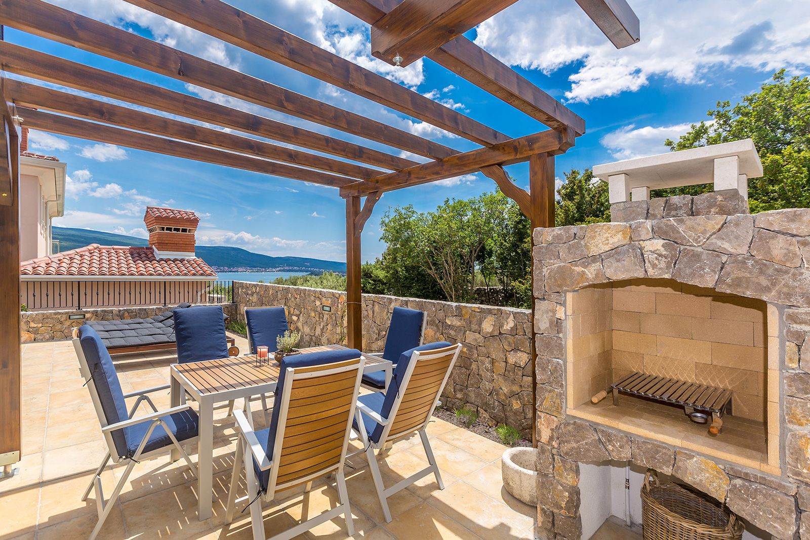 Ova prekrasna kuća za odmor s bazenom nalazi se na otoku Krku u malom mjestu Kornić. Udaljen je oko pet minuta vožnje od povijesnog grada Krka i grada Punta sa svojom dobro zaštićenom lukom. Zbog položaja na padini, iz kuće se pruža fantastičan pogled na more i maslinike po kojima je ovaj kraj poznat. Kuća, namještena s pažnjom na detalje, izgrađena je u tipičnoj otočkoj arhitekturi i sastoji se od uspješne mješavine modernih i tradicionalnih elemenata. Iz dnevnog boravka imate izravan pristup terasi s roštiljem, dnevnim boravkom i sunčalištem te grijanim bazenom. Glavna spavaća soba je u prizemlju, a druge dvije su na katu. Kuća je klimatizirana, ima podno grijanje, a na velikoj i ograđenoj parceli postoje i parkirna mjesta.